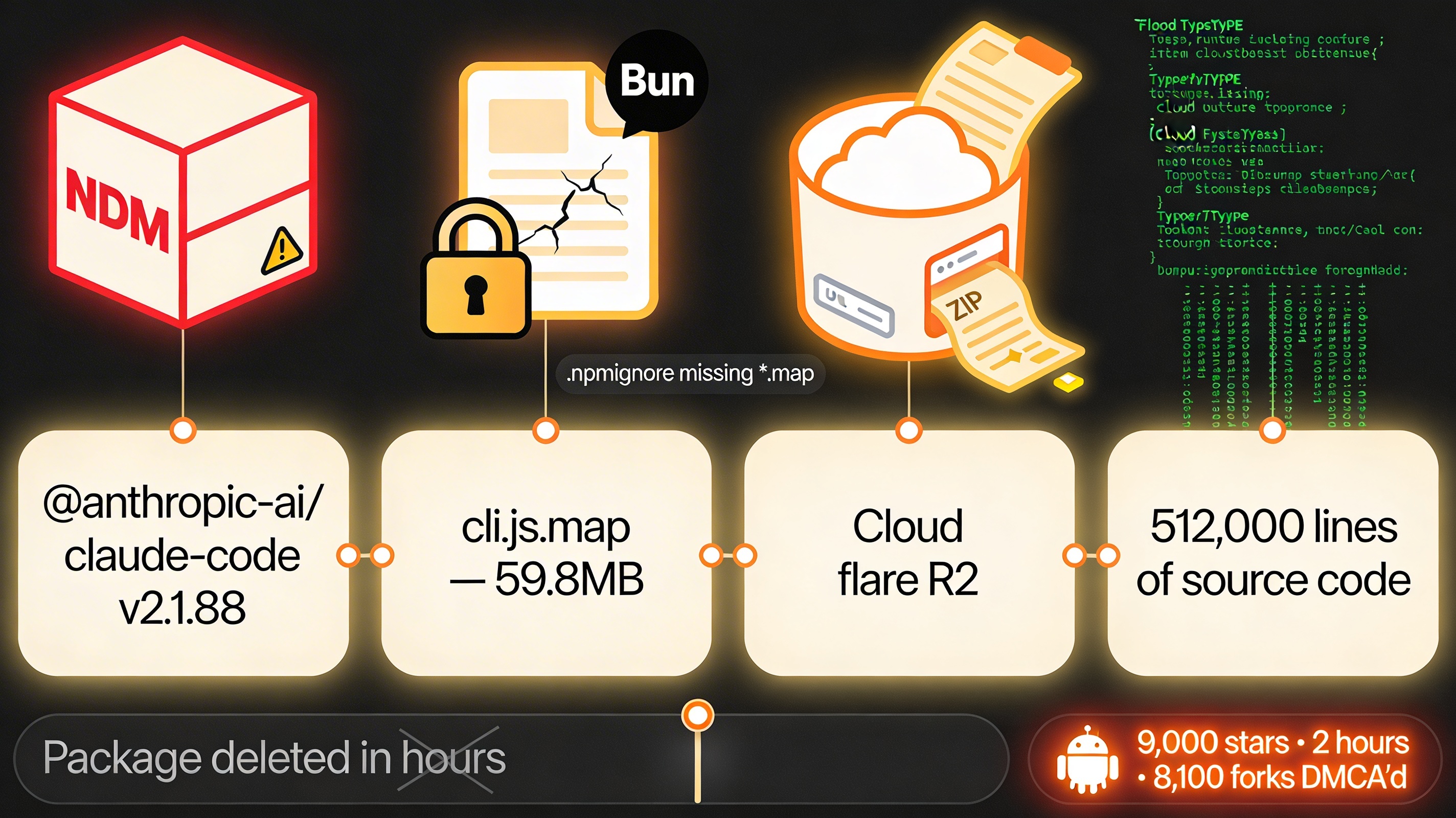 npm package → cli.js.map → R2バケット上のZIP → 512,000行のTypeScript